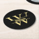 Svart och Guld Monogram | Elegant Initial Skrift Rund Pappersunderlägg