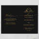 Välkomna era gäster med detta eleganta svarta och gyllene vigselprogram med vacker handritad monogram och moderna och handskrivna kalligrafidetaljer i falskt guldfolie. Svart bakgrund. Möjlighet att anpassa alla områden för att passa dina behov. OBS: detta program levereras plant och kräver vikning på mitten för montering. Det rekommenderade standardpapperet är lämpligt. För en ren vikning föreslår vi att du ritar ett veck i papperet med en billig benvikare. Storleken avser programmets storlek "innan" det viks, som det ser ut på förhandsgranskningen "framifrån". Del av vår "Black and Gold Monogram Wedding Collection" med en mängd olika koordinerade produkter tillgängliga. Besök hela kollektionen på: https://www.zazzle.com/collections/black_and_gold_monogram