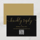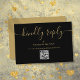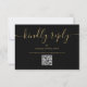 Ett enkelt, elegant signaturskript vänligen svara svart och guld RSVP-kort med QR-kod. Designad av Thisisnotme©