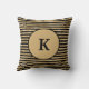 Svart och guld randig monogram kudde.