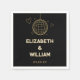 Dessa svarta och gyllene retro disco groovy bröllops servetter kan anpassas med din information i modern typografi. Designad av Thisisnotme