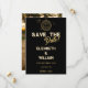 Denna svarta och gyllene retro disco groovy bröllops klara att spara datum kan anpassas med din information i modern typografi och ett speciellt foto på baksidan. Designad av Thisisnotme©