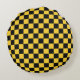 Svart och guld schackbrädemönster rund kudde