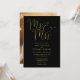 Denna svarta och gyllene eleganta bröllopsinbjudan med skrivstil kan anpassas med all din speciella information för bröllopsdagen och ett speciellt foto på baksidan. Designad av Thisisnotme
