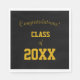 Lägg till klass i en studentfest med dessa pappra blöjor som innehåller färger av svart och guld i skolan, med text utskriven i guld färg. Redigera klassår efter behov. Markera din pappra napkin stil.