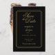 En snyggt svart och guld art deco inspirerade till bröllop spara datum inbjudan med snyggtens typografi och ditt speciella foto på motsatt sida. Designad av Thisisnotme©