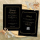 Eleganta geometriska linjer ramar in din personliga bröllopsinformation i chic guldtypografi på svart bakgrund. Med dina detaljer och bröllopswebbplats QR-kod på baksidan. Designad av Thisisnotme©