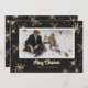 Vackra dubblor sidade svart- och guld-fotojulkort med gnistfull snöflingor och stjärnor med en guld-kalligrafititel och ett foto-ram.