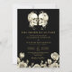 Denna svarta och gyllene 'tills döden skiljer oss åt' gotiska blommiga dödskallar bröllopsinbjudan kan anpassas med din information i modern typografi och speciellt foto på baksidan. Designad av Thisisnotme