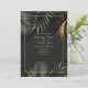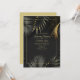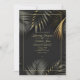 Tropiskt bröllopsinbjudan med inslag av svart och guld.