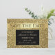 Meddela din speciella dag med lyx och stil med vår glamourösa Spara datum-inbjudan. Med en modern och elegant design i lyxigt glänsande guld och svart, förstärks denna inbjudan av en enkel, sofistikerad kalligrafiskrift. Perfekt för att fånga en känsla av tidlös glamour, säkerställer det att dina gäster ivrigt väntar på din fest.