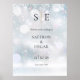 Denna eleganta minimalistiska välkomstskylt för vinterbröllop kan anpassas med era monograminitialer och bröllopsinformation på en snöflinga-bakgrund. Designad av Thisisnotme