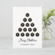 Detta moderna och enkla julkort har 15 svarta och gyllene skivor som hänger som julgransprydnader på en vit bakgrund med guldsnöre. Redigera ditt julmeddelande och familjenamn.