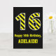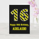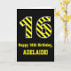 På framsidan av den här roligten och med den snygga födelseteckendesignen finns ett stort nummer "16", med gult och svart rand mönster. Det innehåller också budskapet "Lycklig 16:e födelsedag" och personlig namn. Bakgrunden till framsidan är svart färgad. Insidan innehåller ett hälsning-meddelande från personligens födelsedag, eller kan kanske tas bort och lämnas tomt om ett meddelande ska skrivas för hand i stället. Ett sådant här födelsedagskort i anpassadet kan vara ett roligt för att skicka ett meddelande i firande om någons sextonårsdag. [~Z0000382]