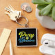 SVART OCH GULT PRAY FÖR UKRAINA MED BLOMMAR FYRKANTIG SILVERFÄRGAD NYCKELRING