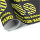 Den här roligten, fetstilt, födelsemetterad papper design har ett stort nummer "49", med en gult och svart stripe mönster. Det innehåller också meddelandet "Lycklig 49:e födelsedag" och ett eget namn. Bakgrunden är svart på färgad. Det kan vara ett roligt att slå in en gåva eller gåva som ges till någon som firar sin fyrtionionde födelsedag... -...papper... [~Z0000381]
