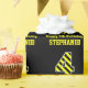 Svart och Gult stripe "4"; 4e födelsedagen + Namn Presentpapper