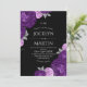 Svart och lila nyckfull flora bröllop inbjudningar