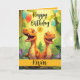 Svart och Orange Trex-ballong 1:a födelsedag Kort
