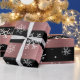 Rastad svart och ro guld med snöflingor inslagning papper. Vackra helgdag som är pappra för helgdag, julklappar, vintergåvor osv.