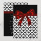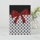 Svart och vit Fleur De Lis med ljust röd band och bröllopsinbjudan i bow