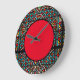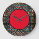 Denna konstnärliga väggklocka har en glasmålning kant och en röd mitt. Ett flerfärgat mönster i akvamarinblått, rött och svart. Denna klocka skulle vara en genomtänkt present för en husvärmning eller en annan tillställning.