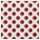 Detta slående geometriska mönster har djärva svarta cirklar konturerade i levande rött, arrangerade i ett upprepande prickmönster på en skarp vit bakgrund. Den starka kontrasten mellan rött, svart och vitt skapar en dramatisk, iögonfallande effekt som känns både retro och modern. Det skiktade utseendet på prickarna ger djup och dimension, vilket ger designen en lekfull men ändå kraftfull närvaro. Med sin högkontrastpalett och rytmiska upprepning fångar detta prickmönster uppmärksamheten och levererar tidlös grafisk stil.