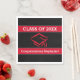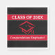 Den enkla men enastående studenten-utformningen har en röd studentmössa i mitten. Över och under studentmössan är tjockt rött linjer med vit trim. Inuti den översta raden står anpassade text som anger klass 20XX där du kan lägga till rätt klassår för studenten. På den undre raden finns anpassade med vitt teckensnitt där du kan lägga till student namn etc. Matchande inbjudningar och tjänster finns också tillgängliga!