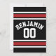 Svart och röd sport Jersey-eget namnnummer Inbjudningar