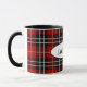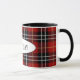 Svart och röd skotsk tartan pläderade med personlig namn. Namn kan redigeras eller tas bort.