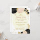 Romantiska svarta och rosa blommor med guld löv botaniska födelsedagsfest inbjudan. glitter-uppgifterna simuleras.