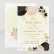 Romantiska svarta och rosa blommor med guld löv botaniska inbjudningskort för möhippan. glitter-uppgifterna simuleras. Den är lämplig för både möhippa- och babyduschinbjudningskort.