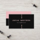 Det här affärskortet är ett överkomligt pris och ett val av perfekt för alla som vill främja sig själva eller sitt arbete till låg kostnad. Namn och jobbtiteln (framsidan av kortet) och kontaktinformationen och webbplatsen (baksidan av kortet) kan enkelt ändras till din egen. Det är enkelt, modernt och elegant designat med lätt att läsa text på en sjudande svart och Rosa bakgrund.