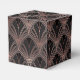 Elegant presentförpackning med roséguld och svart art déco-mönster.