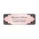 Personalisera dessa eleganta svarta och rosentonsbröllops returadressetiketter inspirerade av blommig spets. Matchande föremål finns tillgängliga för att komplettera dessa svarta och rosentonsbröllops returadressetiketter.