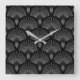 Svart och Silver Art Deco Fläkt-designklocka Fyrkantig Klocka