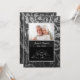Elegant inbjudan till tjugofemårsjubileum på svart och silver blom-damask med silveraccentkant för att fira det speciella datumet tjugofem år tillsammans. Ladda upp en bild för att ersätta bildplatshållaren. Anpassa inbjudans framsida och baksida med tid, datum, plats och annan information.