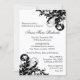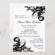 © 2013 Socialite Design. Vackra hörnsnurrar och blommor, i svart och silver/grått, inbjudningskort för möhippan. En inbjudan till elegant när som helst under året firande. Utformningen på baksidan gjordes tillgänglig så att du kan lägga till ytterligare information, t.ex. körriktningar eller karta.