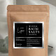 Tillsätt den avslutande beröringen till dina badsalter, kroppskoncentration eller någon annan bad- och kroppsprodukt med denna elegant vattensäkra produktetikett. Med faux silver-effekter, svart bakgrund, utrymme för logotyp och namn och ingredienser, kommer detta nya produktmärke säkert att ge dina produkter en glam-beröring. Perfekt till använda för badpåsar eller burk.