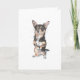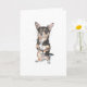 Bläck- och akvarelldesign av Chihuahua. Detta är en livlig, uttrycksfull och illustrativ teckning med linjevarianter, markeringar och stänk som orsakats av den kraftiga användningen av en traditionell dopp-penna och akvarellstänk, detta ger verket en fräsch och omedelbar stil där mina "uträkningar" kan ses och uppskattas. Det är alltid mitt mål att uttrycka ett element av särpräglad karaktär i de djur jag porträtterar för att ge dig ett leende på läpparna, jag hoppas att min mission har fullbordats. Texten på detta kort kan ändras för en specifik tillställning, och det kan personifieras eller tas bort.