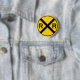 En spårkorsknapp för din knappsamling. Baserat på varningsskyltar. Gult och svart knapp.