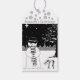 Svart och vit bild söt snögubbe vid jul presentetikett