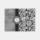 Svart och vit Blommigt, Rand-Monogram Fleecefilt