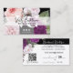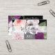 En möteskort för frisör med stil! Svart och vitt med dramatiska blomsterdekorationer skapar ett sofistikerat, feminint tema för ett litet företags varumärke och marknadsföring. Vackra vintage rosor och botaniska kvistar är kombinerade med ett modernt sax-element för denna layout för specialiserade frisörer.