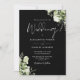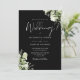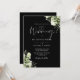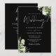 Denna eleganta svarta och vita bröllopsinbjudan med botaniska gröna blad kan anpassas med din information i chic typografi med detaljer om din bröllopswebbplats och din QR-kod på baksidan. Designad av Thisisnotme