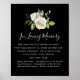 Svart och vit blomsterbröllop minnestavla poster