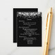 En rolig svart-vit bröllopsdetaljer bifogad kort på svart bakgrund och ljusgrå text.