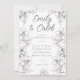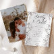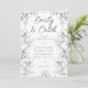 Mjuk och feminin, denna svarta och vita bröllopsinbjudan är inramad med en blomstergrafikdesign. Med sin söta design och parets foto på baksidan kommer dina gäster att få ett bra första intryck av din händelse med den romantiska stilen på denna inbjudan!