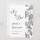 Denna vackra blommiga Save the Date har svart och vit blomster med vacker kalligrafi på framsidan och ett foto av paret på baksidan. För att anpassa, klicka bara "Personifiera denna design", ladda upp ditt foto och ange dina detaljer. Zazzle tar hand om resten.