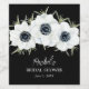 Skapa dina egna bröllopsfestetiketter för vinflaskor med denna personliga design med eleganta svarta och vita anemoneblommor och blad i vattenfärg på svart bakgrund. MATCHANDE artiklar i vår kollektion.